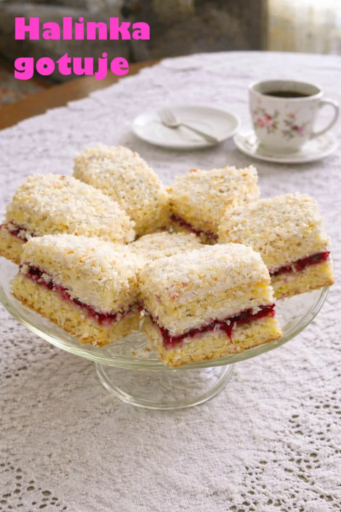 To jest przepis stary, sprawdzony i wielokrotnie powtarzany w domach, gdzie nic się nie marnowało. Krem na bułkach jest lekki, nieprzesłodzony i bardzo stabilny po schłodzeniu. Kwaśny dżem przełamuje słodycz, a kokos nadaje całości charakteru. To ciasto dobrze znosi przechowywanie w lodówce i następnego dnia smakuje jeszcze lepiej niż tuż po złożeniu.
